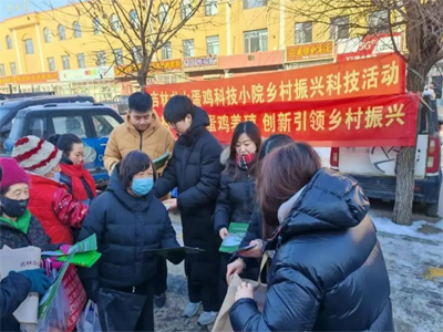 2026年1月4日,在全面推进乡村振兴、加快农业农村现代化的背景下,吉林龙山蛋鸡科技小院、辽源市明乾绿色禽蛋养殖专业合作社博士创新站、吉林省明乾营养蛋品科学家工作室三方联动,于辽源市渭津镇大集共同举办“科技赋能蛋鸡养殖,创新引领乡村振兴”主题科技服务活动。辽源市明乾绿色禽蛋养殖专业合作社王明乾理事长,吉林农业大学林学与草学学院尚红梅教授、张南翼副教授、司强博士及硕士研究生刘少楠、李子尚共同参与此次活动。活动依托多元主体协同优势,通过科技下乡精准服务、优质蛋品集中推介,助力蛋鸡产业提质增效,为乡村全面振兴注入科技动能。
